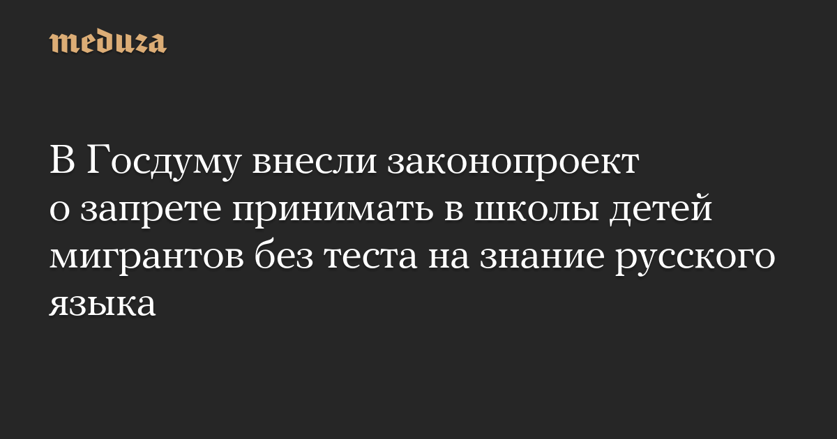 Законопроект вносит изменения в федеральный закон «Об образовании в Российской Федерации». Поправки предполагают, что дети иностранных граждан и лиц без гражданства для поступления в школу должны сдать тест на знание русского языка на уровне, достаточном для обучения. Тех, кто не сможет пройти проверку, до обучения не допустят.