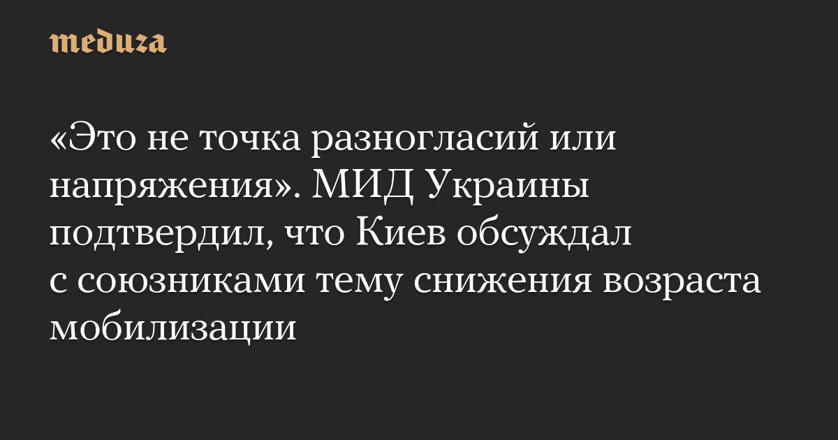 «Это не точка разногласий или напряжения». МИД Украины подтвердил, что Киев обсуждал с союзниками тему снижения возраста мобилизации