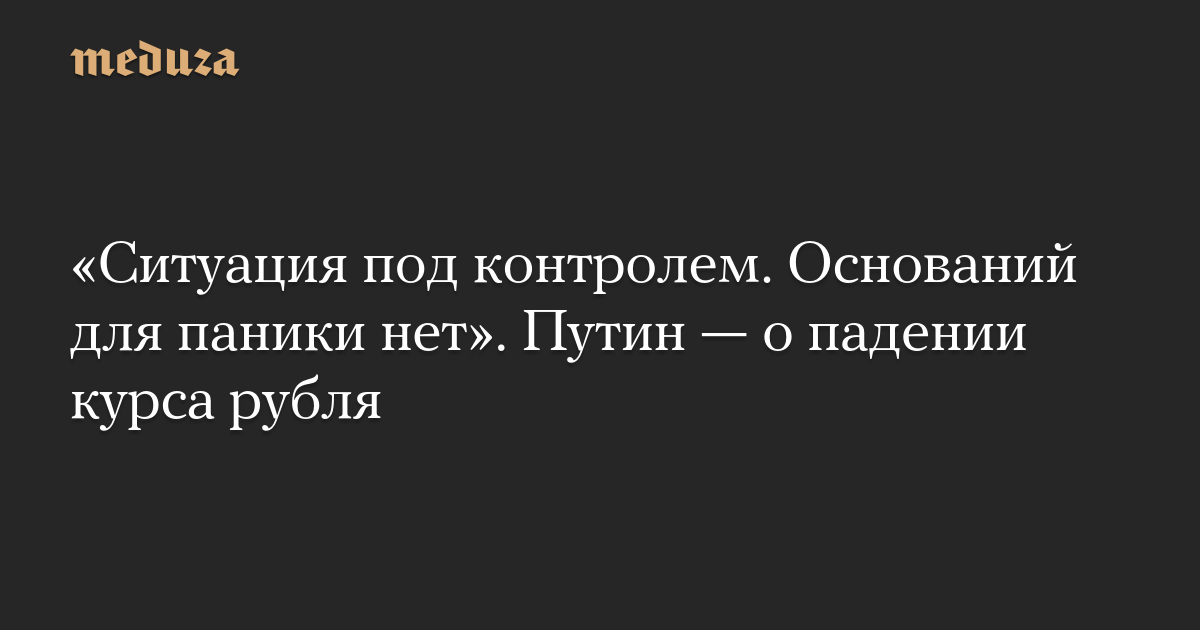 «В целом, на мой взгляд, ситуация под контролем. И каких-то оснований для паники уж точно совершенно нет. Да, и в нашей стране, и в соседних процессы непростые, но они под контролем, все идет по плану», — сказал Путин (цитата по ТАСС).