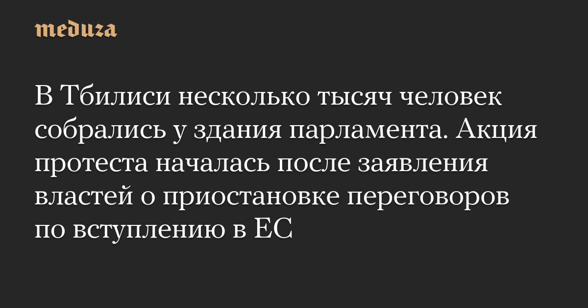В Тбилиси несколько тысяч человек собрались у здания парламента. Акция протеста началась после заявления властей о приостановке переговоров по вступлению в ЕС