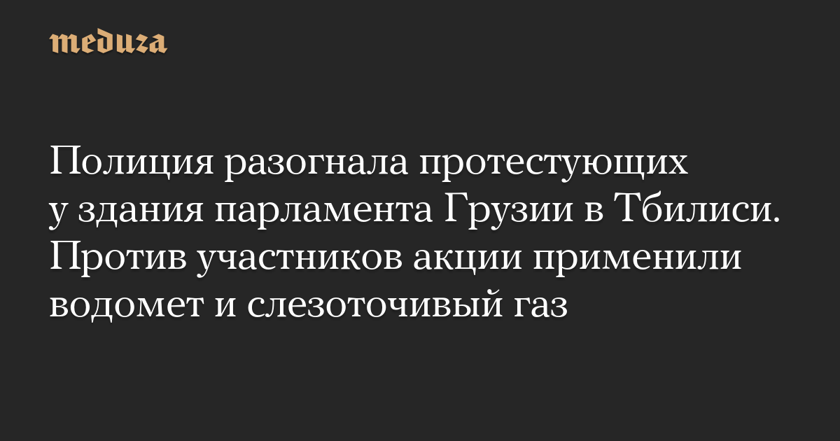 Полиция разогнала протестующих у здания парламента Грузии в Тбилиси. Против участников акции применили водомет и слезоточивый газ