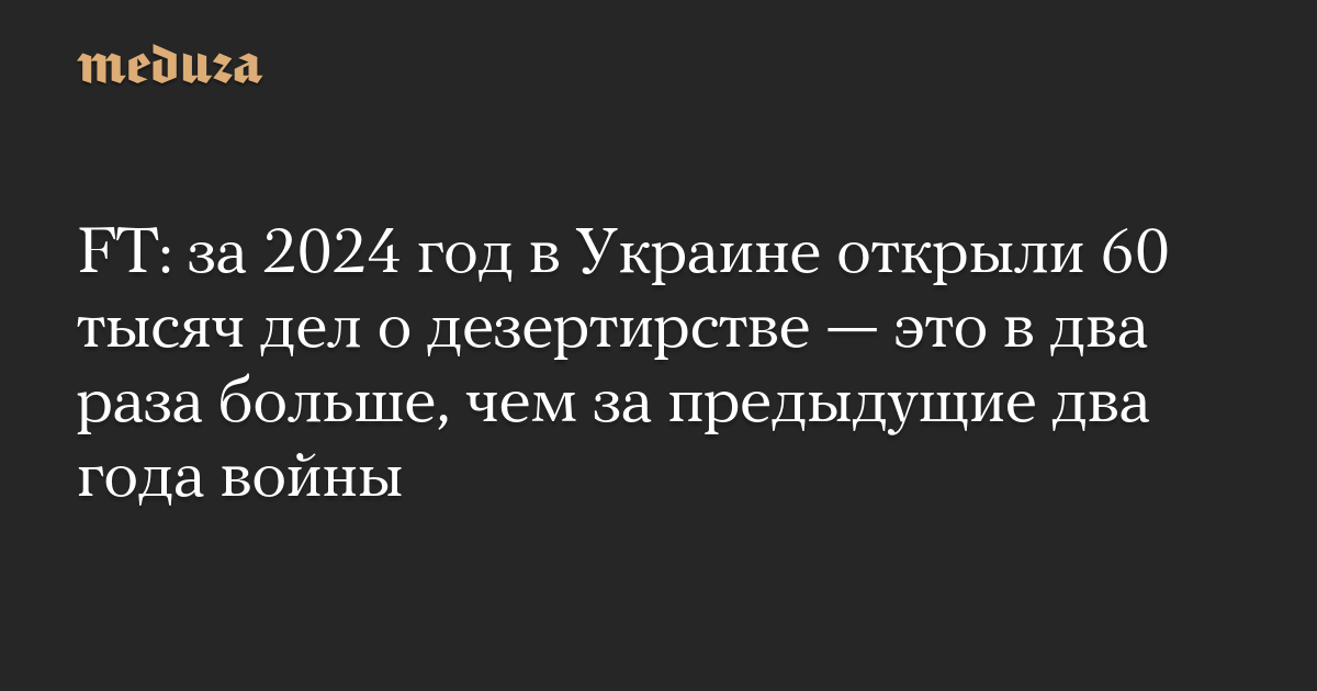 FT: за 2024 год в Украине открыли 60 тысяч дел о дезертирстве — это в два раза больше, чем за предыдущие два года войны
