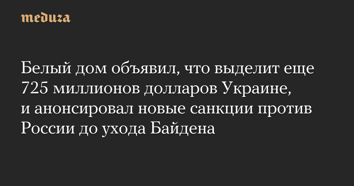 Белый дом объявил, что выделит еще 725 миллионов долларов Украине, и анонсировал новые санкции против России до ухода Байдена