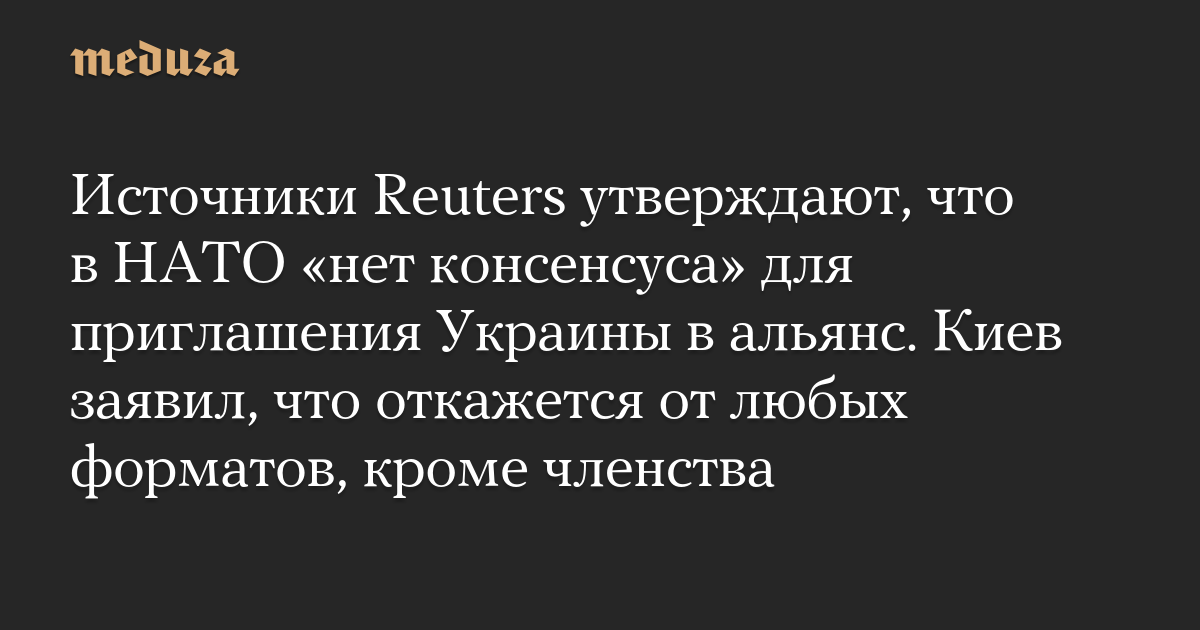 Источники Reuters утверждают, что в НАТО «нет консенсуса» для приглашения Украины в альянс. Киев заявил, что откажется от любых форматов, кроме членства