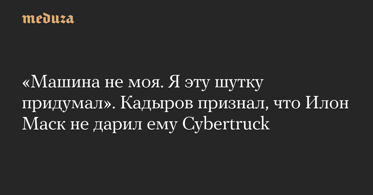 «Мне интересен сам Илон Маск, мне нравится его характер, манера жизни, как он ведет себя, его позиция жизненная, я люблю с ним подшучивать через соцсети. Машину он мне не подарил, машина не моя была — я эту шутку придумал и запустил», — заявил Кадыров, отвечая на вопрос о Cybertruck.
