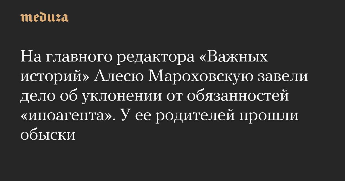 На главного редактора «Важных историй» Алесю Мароховскую завели дело об уклонении от обязанностей «иноагента». У ее родителей прошли обыски