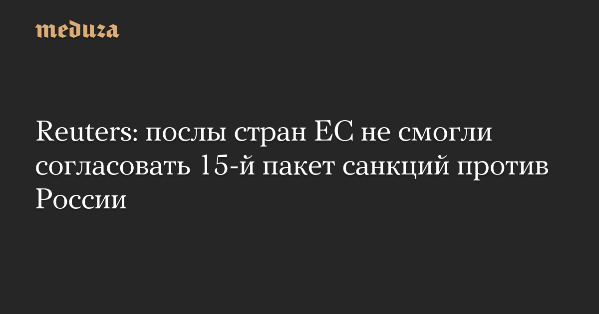 15-й пакет также включает санкции против танкеров, перевозящих российскую нефть. Члены ЕС вернутся к согласованию позже, пишет Reuters.
