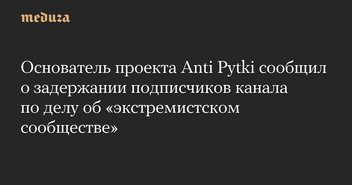 Основатель проекта Anti Pytki сообщил о задержании подписчиков канала по делу об «экстремистском сообществе»