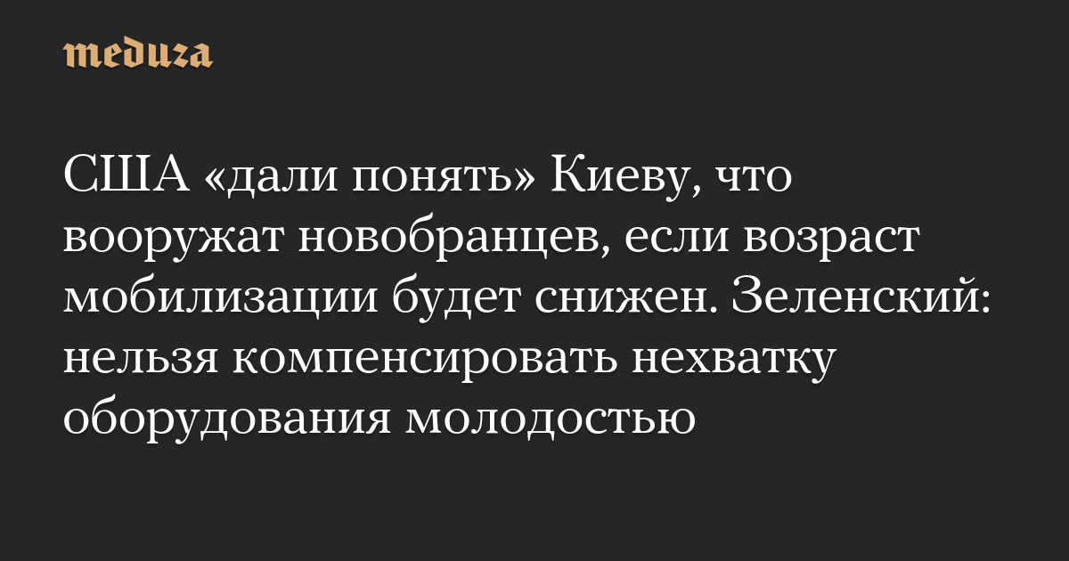 США «дали понять» Киеву, что вооружат новобранцев, если возраст мобилизации будет снижен. Зеленский: нельзя компенсировать нехватку оборудования молодостью