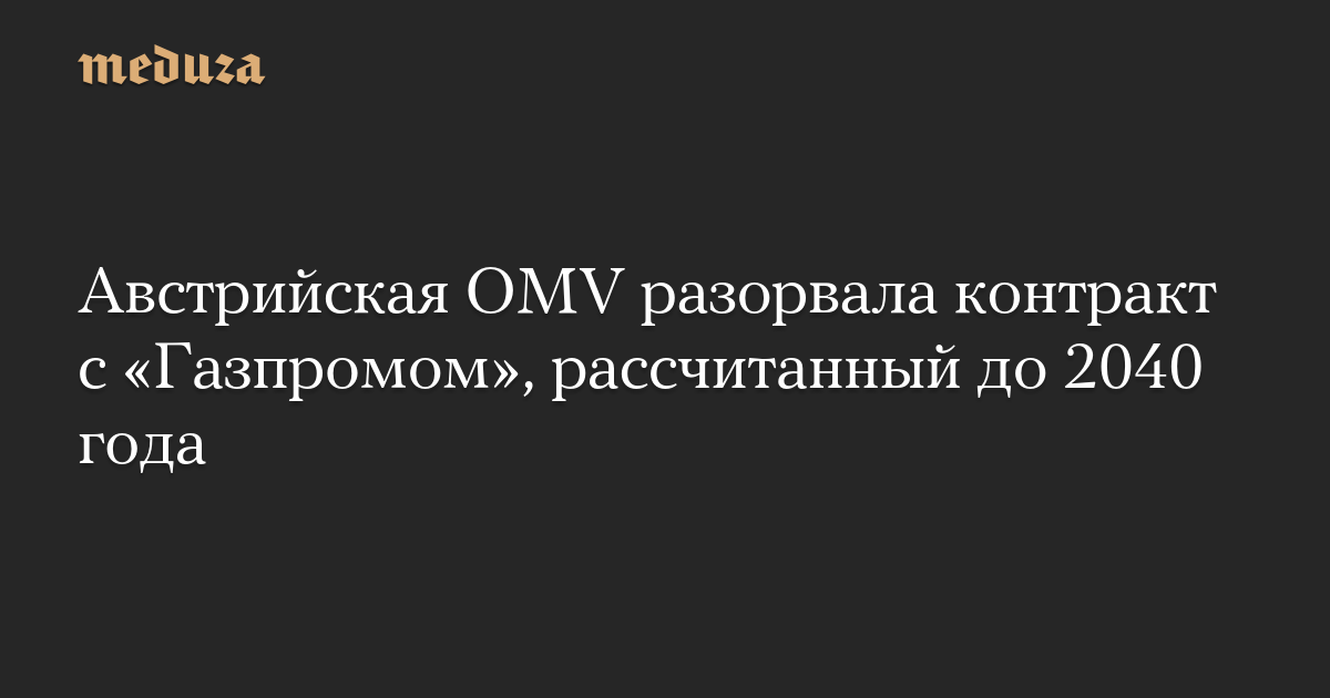 Австрийская OMV разорвала контракт с «Газпромом», рассчитанный до 2040 года
