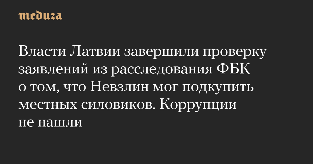 Бюро по предотвращению и борьбе с коррупцией (KNAB) Латвии завершило ведомственную проверку утверждений из расследования Фонда борьбы с коррупцией о том, что сотрудники правоохранительных органов Латвии за взятки помогали бывшему топ-менеджеру ЮКОСа Леониду Невзлину преследовать российских оппозиционеров.