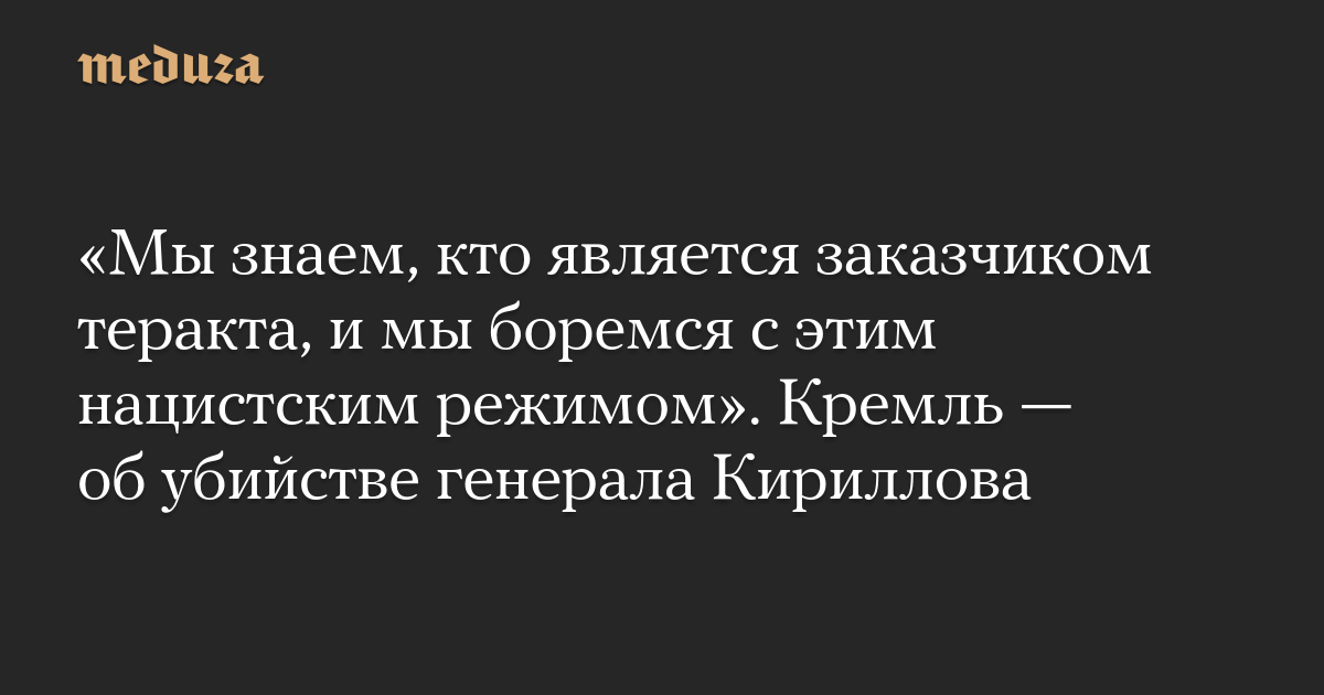 «Мы знаем, кто является заказчиком теракта, и мы боремся с этим нацистским режимом». Кремль — об убийстве генерала Кириллова