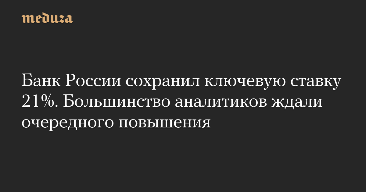 Банк России сохранил ключевую ставку 21%. Большинство аналитиков ждали очередного повышения