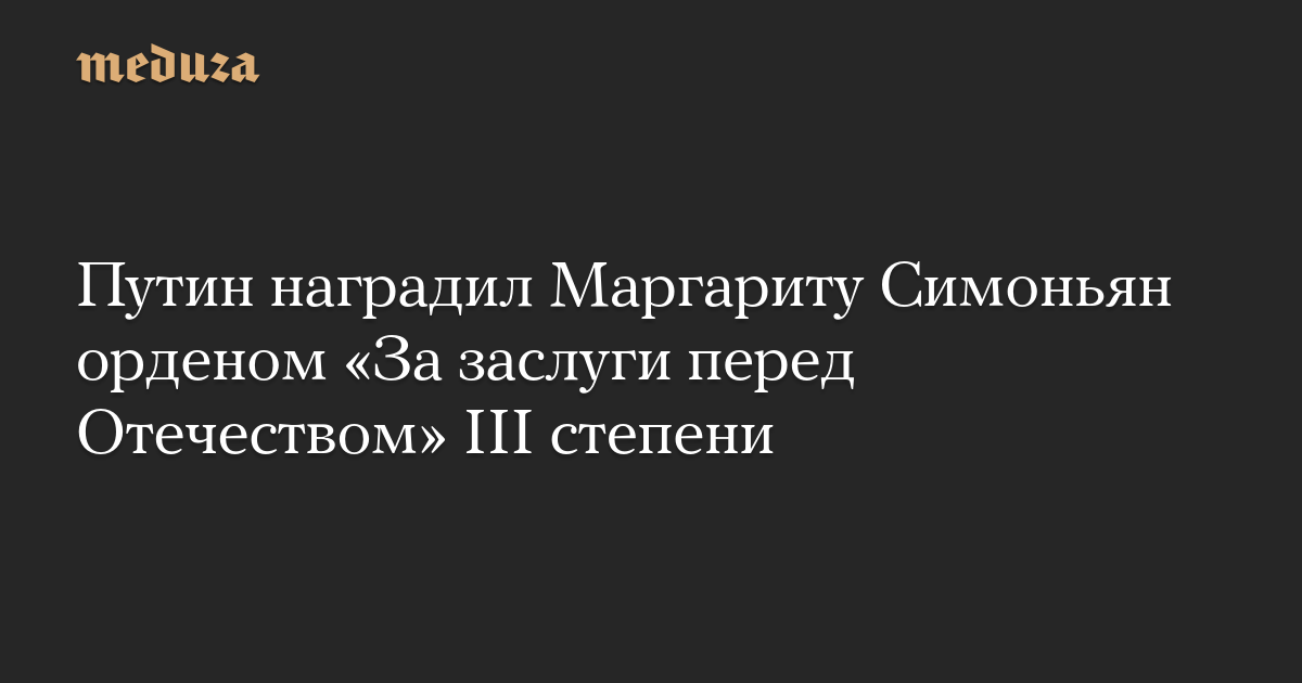 Путин наградил Маргариту Симоньян орденом «За заслуги перед Отечеством» III степени