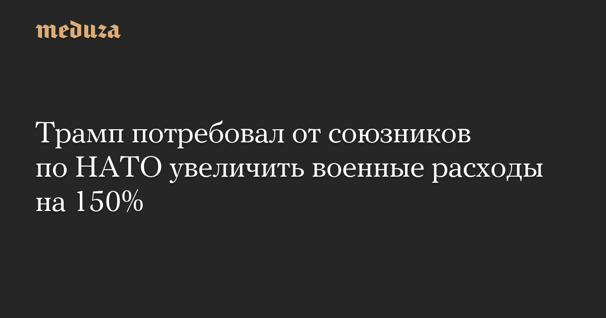 Сейчас по договоренностям внутри НАТО страны-члены должны тратить на оборону не менее 2% ВВП (в 2024 году это требование выполнили лишь 23 из 32 стран блока). Таким образом, Трамп требует увеличить расходы в два с половиной раза, то есть на 150%.