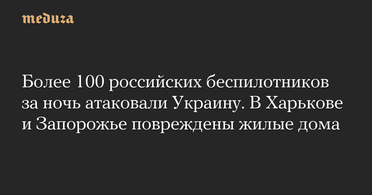 Более 100 российских беспилотников за ночь атаковали Украину. В Харькове и Запорожье повреждены жилые дома