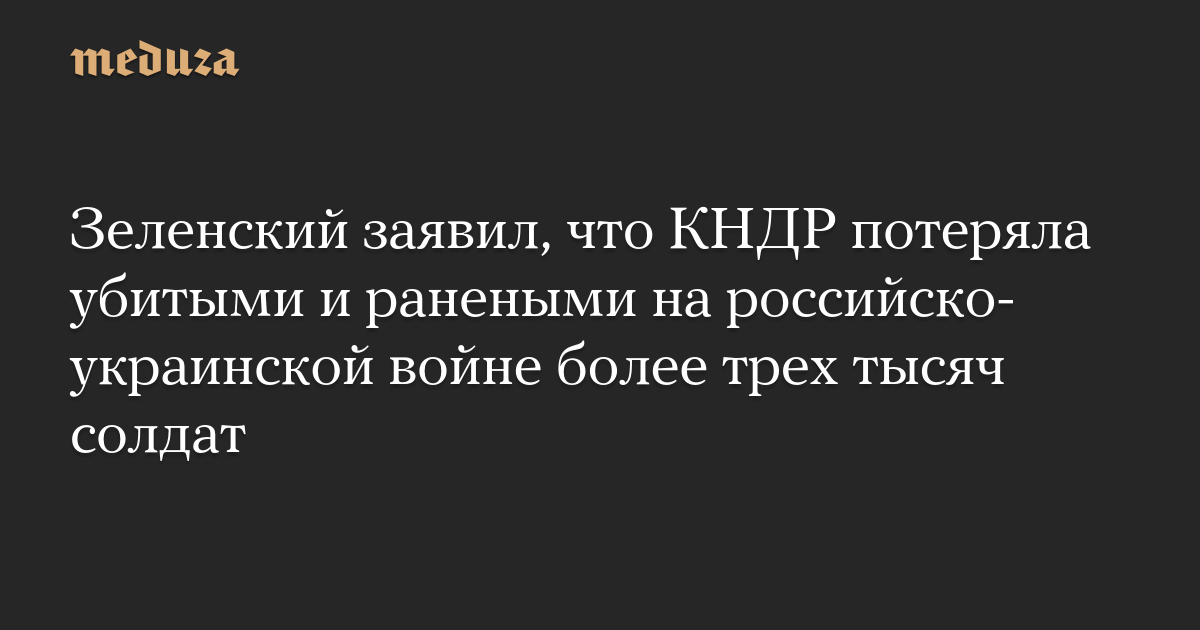 Зеленский заявил, что КНДР потеряла убитыми и ранеными на российско-украинской войне более трех тысяч солдат