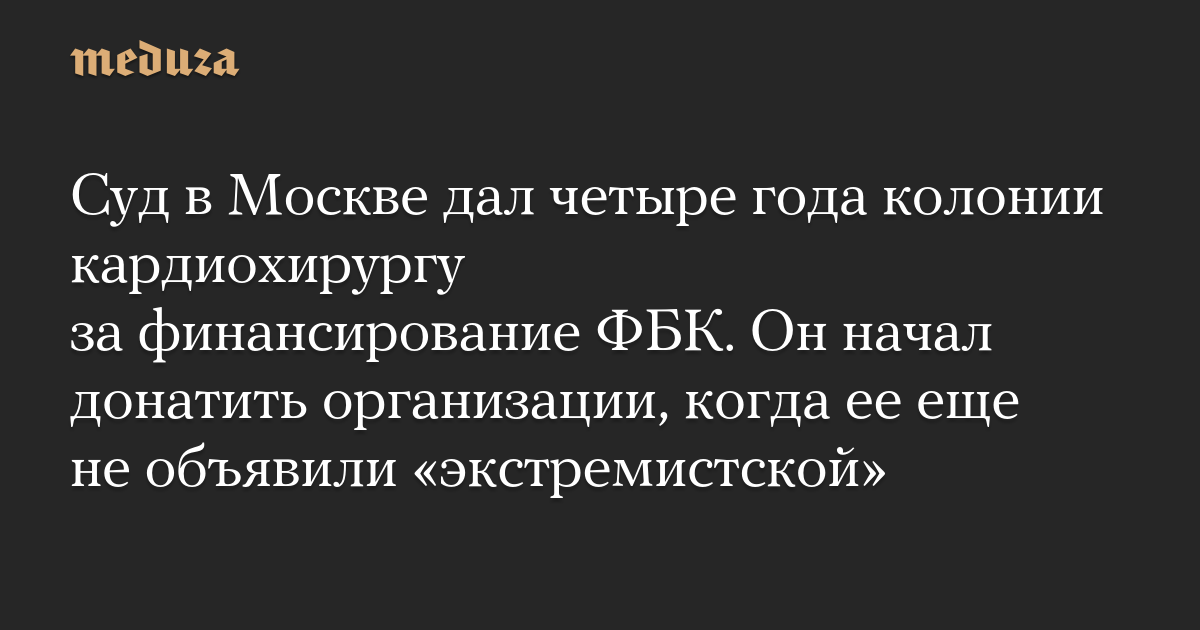 Суд в Москве дал четыре года колонии кардиохирургу за финансирование ФБК. Он начал донатить организации, когда ее еще не объявили «экстремистской»