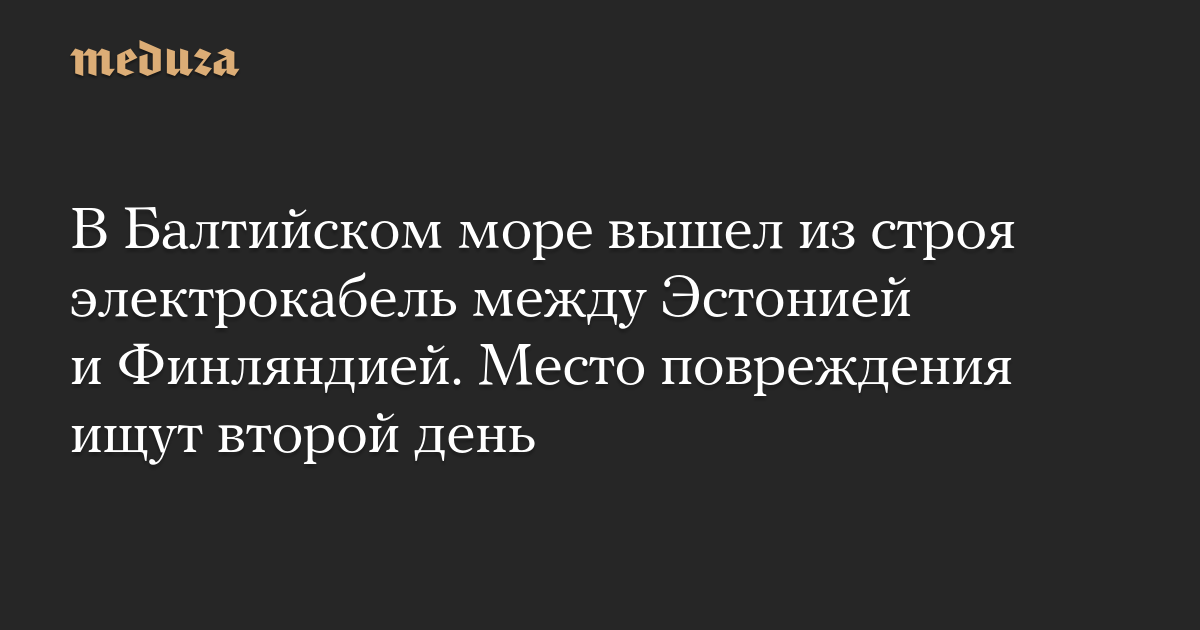 В Балтийском море вышел из строя электрокабель между Эстонией и Финляндией. Место повреждения ищут второй день