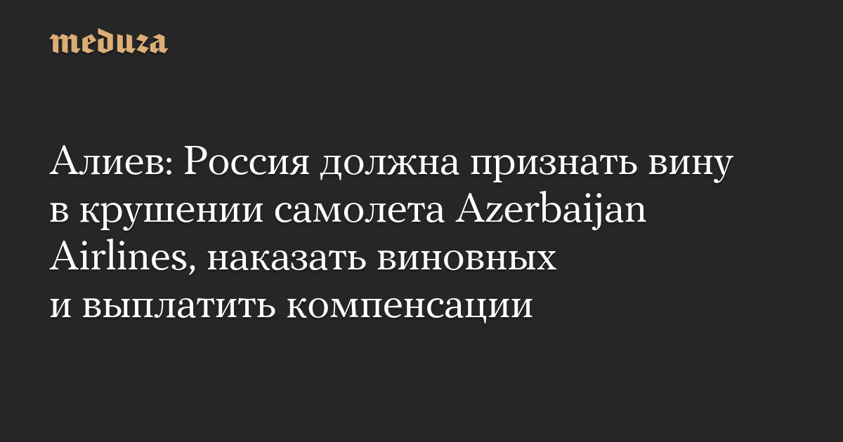 Алиев: Россия должна признать вину в крушении самолета Azerbaijan Airlines, наказать виновных и выплатить компенсации