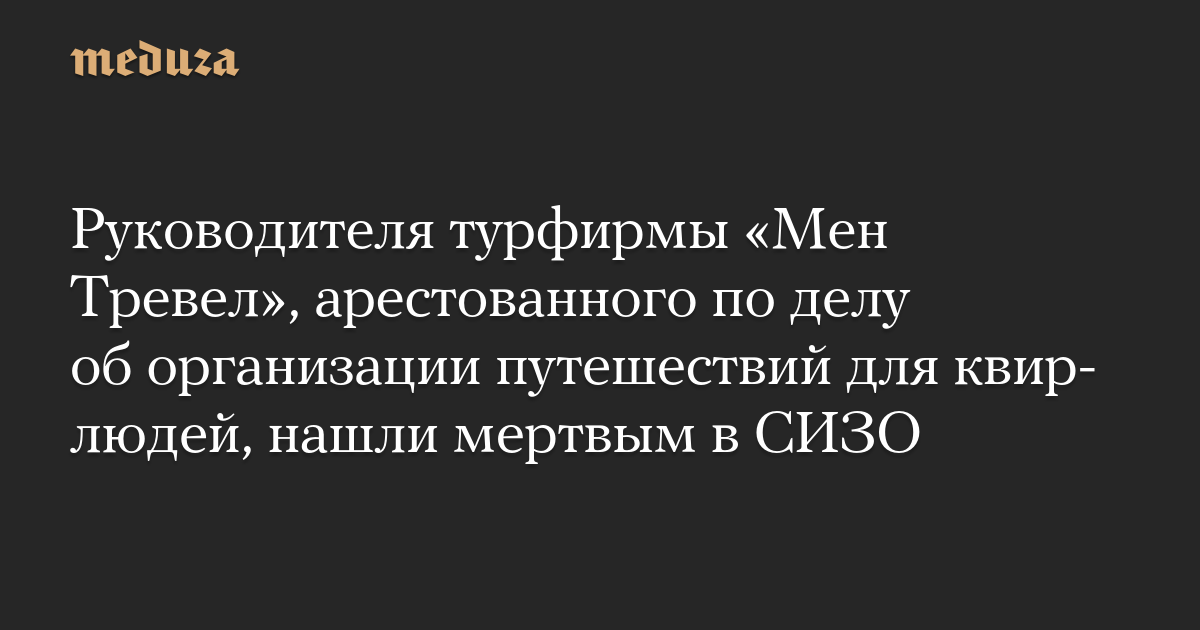 Руководителя турфирмы «Мен Тревел», арестованного по делу об организации путешествий для квир-людей, нашли мертвым в СИЗО