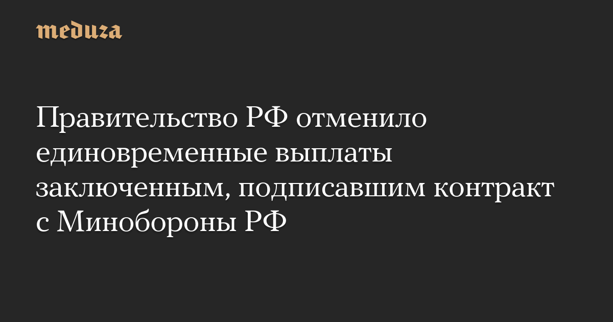 Премьер-министр РФ Михаил Мишустин подписал постановление, согласно которому заключенные, подписавшие контракт с Минобороны РФ, не смогут рассчитывать на единовременные выплаты. Постановление опубликовано на портале правовой информации.