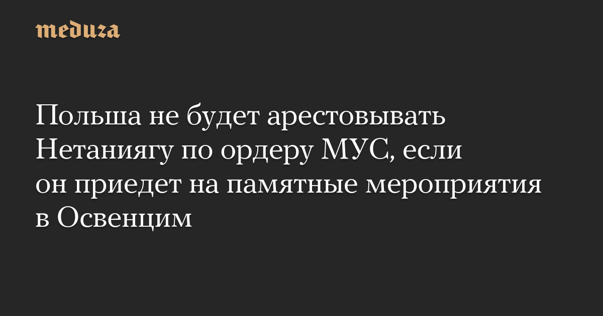 Обновление. Власти Польши не будут арестовывать Биньямина Нетаниягу по ордеру МУС, если он приедет на памятные мероприятия в Освенцим, сообщил премьер-министр Польши Дональд Туск. Кабинет министров Польши принял соответствующую резолюцию. «Я подтверждаю, будь то премьер-министр, президент или министр — как сейчас заявлено — образования Израиля, что кто бы ни приехал в Освенцим, ему будет обеспечена безопасность и он не будет задержан», — сказал Туск.