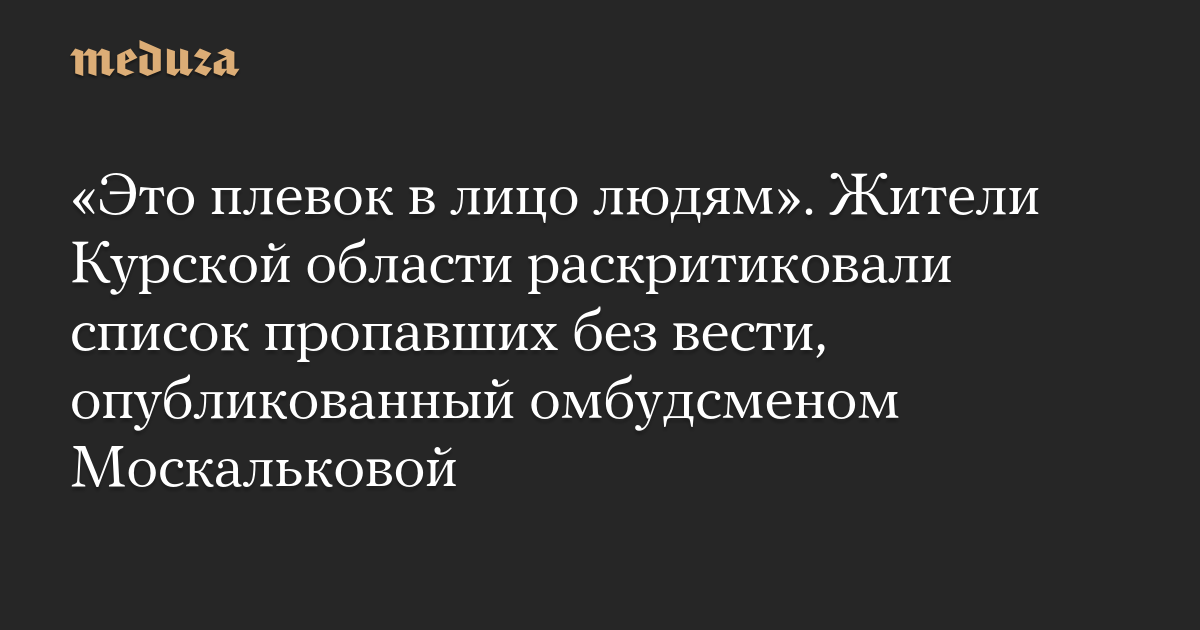 «Это плевок в лицо людям». Жители Курской области раскритиковали список пропавших без вести, опубликованный омбудсменом Москальковой