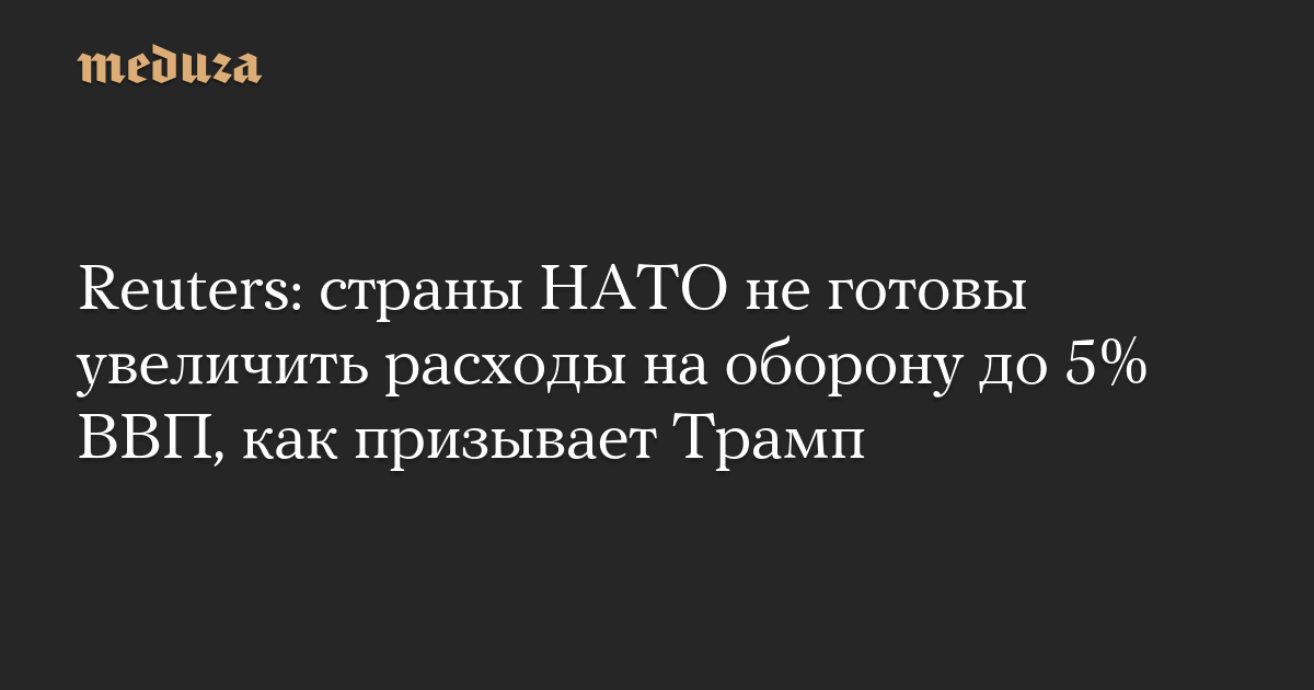 По словам аналитиков, опрошенных Reuters, цель в 5% будет политически и экономически невозможна почти для всех членов альянса — это потребует сотен миллиардов долларов дополнительного финансирования.