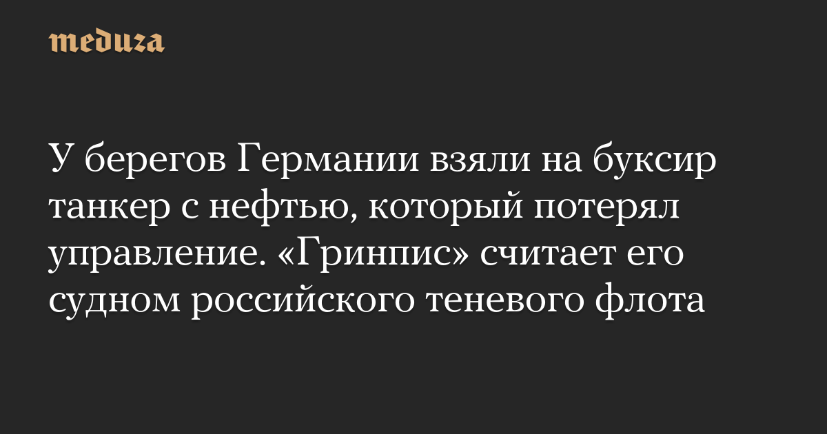 У берегов Германии взяли на буксир танкер с нефтью, который потерял управление. «Гринпис» считает его судном российского теневого флота