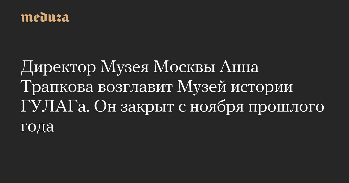 Директор Музея Москвы Анна Трапкова возглавит Музей истории ГУЛАГа. Он закрыт с ноября прошлого года