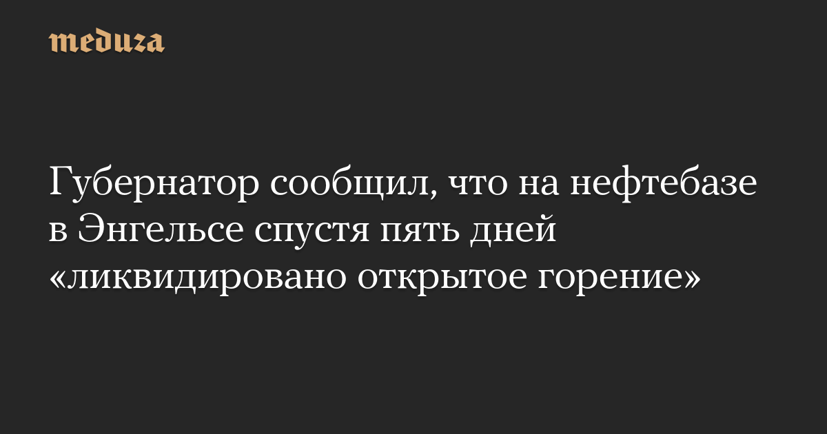Губернатор сообщил, что на нефтебазе в Энгельсе спустя пять дней «ликвидировано открытое горение»
