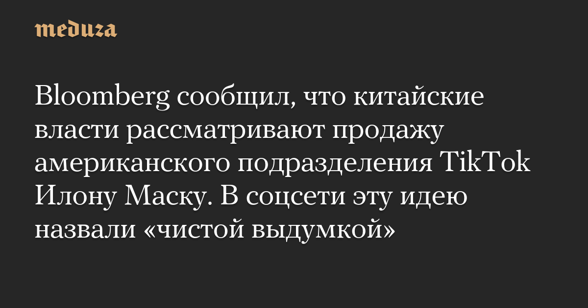 Bloomberg сообщил, что китайские власти рассматривают продажу американского подразделения TikTok Илону Маску. В соцсети эту идею назвали «чистой выдумкой»