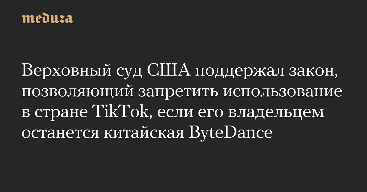 Верховный суд США поддержал закон, позволяющий запретить использование в стране TikTok, если его владельцем останется китайская ByteDance
