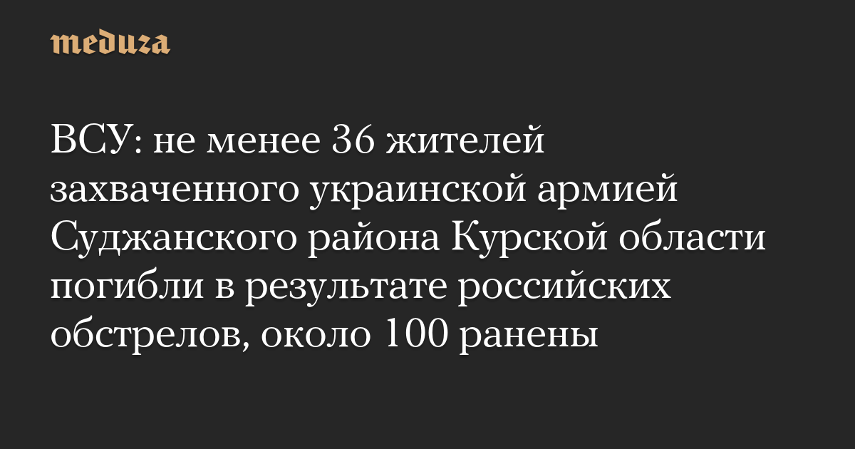 ВСУ: не менее 36 жителей захваченного украинской армией Суджанского района Курской области погибли в результате российских обстрелов, около 100 ранены