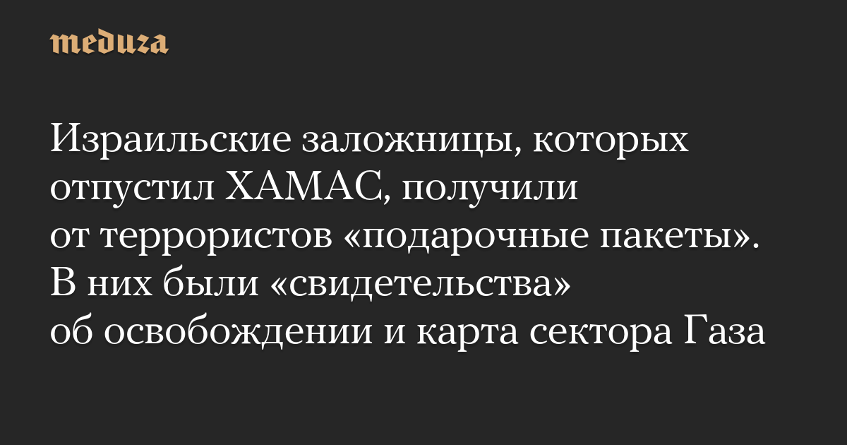 Израильские заложницы, которых отпустил ХАМАС, получили от террористов «подарочные пакеты». В них были «свидетельства» об освобождении и карта сектора Газа