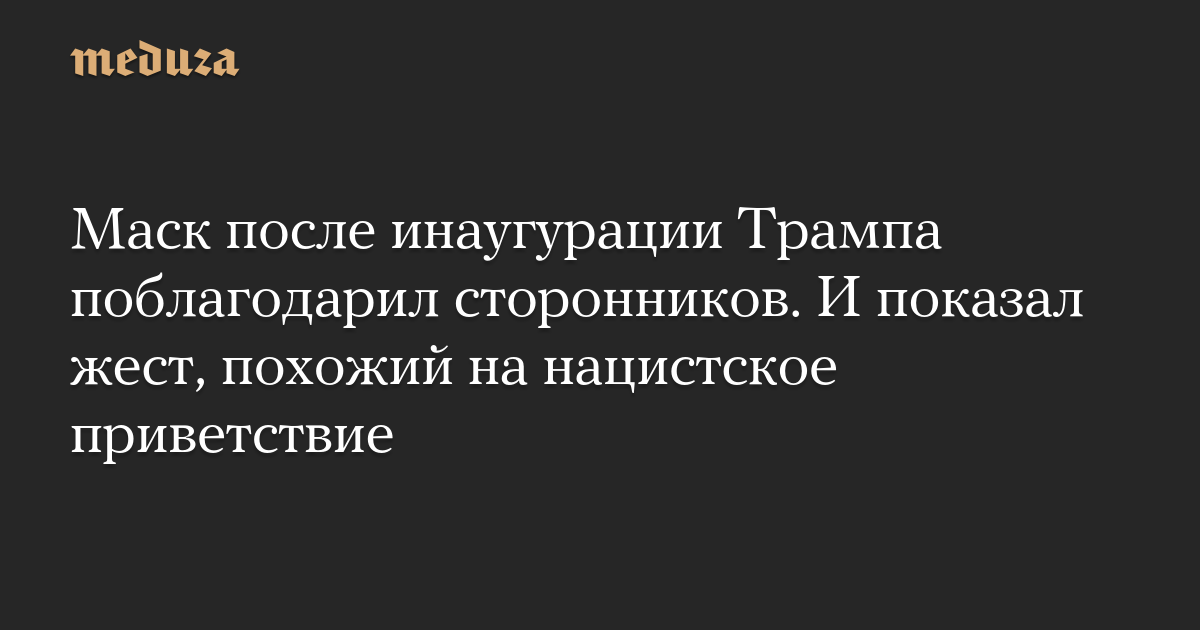 Основатель SpaceX и Tesla Илон Маск после инаугурации Дональда Трампа выступил с короткой речью, в конце которой дважды показал рукой жест, похожий на нацистское приветствие.