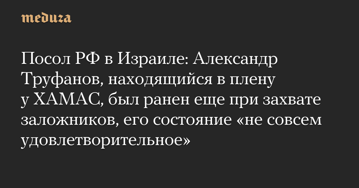 Посол РФ в Израиле: Александр Труфанов, находящийся в плену у ХАМАС, был ранен еще при захвате заложников, его состояние «не совсем удовлетворительное»