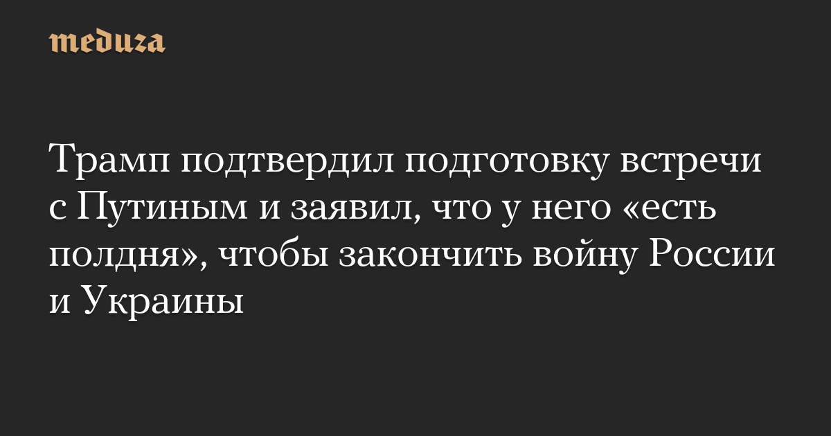 Трамп подтвердил подготовку встречи с Путиным и заявил, что у него «есть полдня», чтобы закончить войну России и Украины