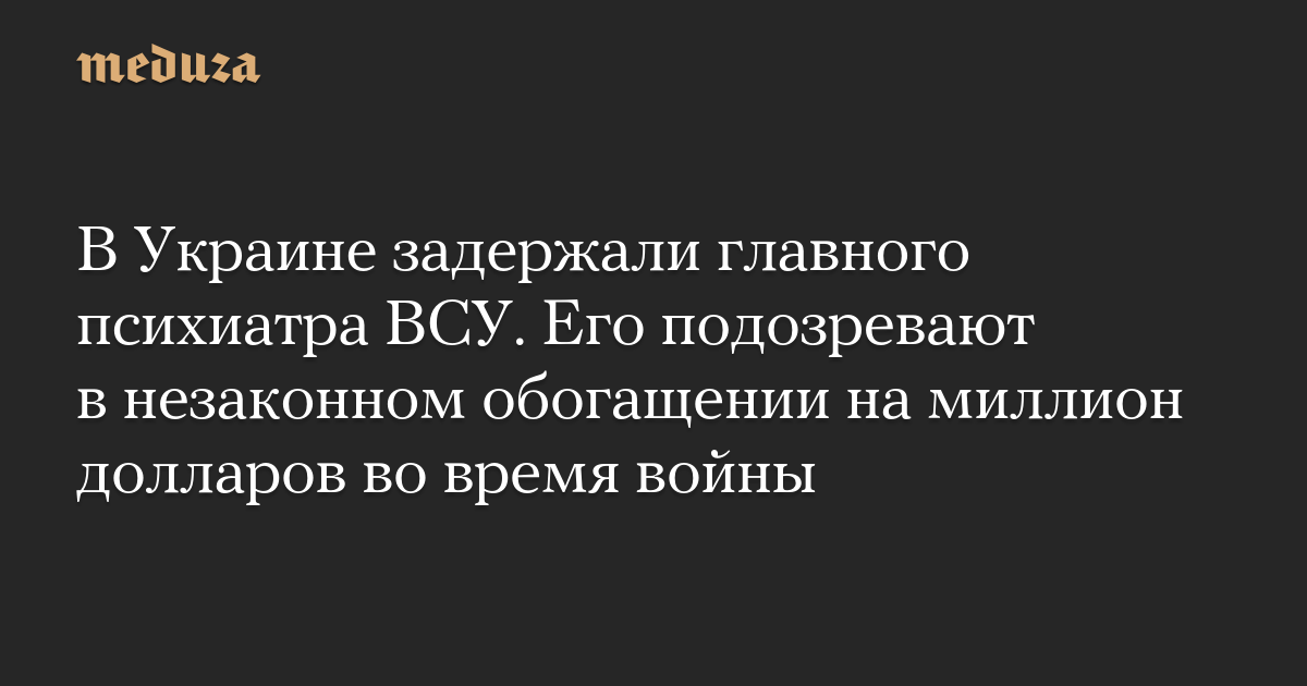 В Украине задержали главного психиатра ВСУ. Его подозревают в незаконном обогащении на миллион долларов во время войны