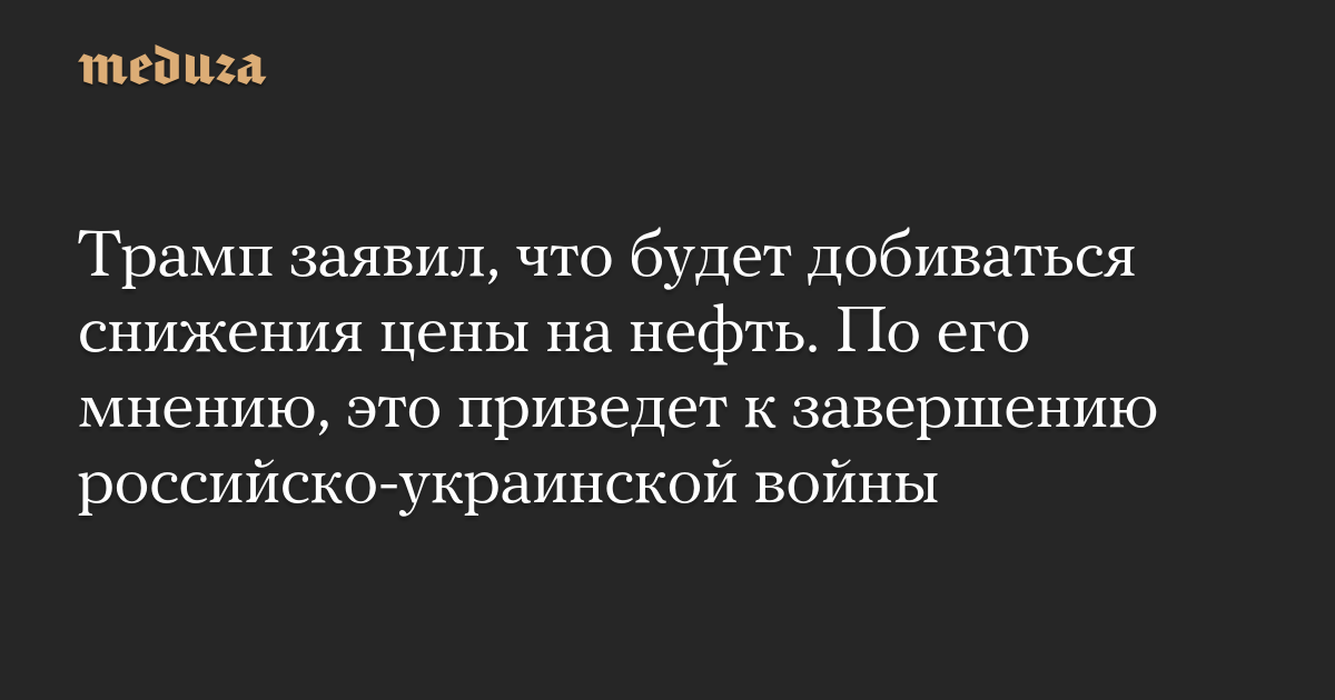 «Я также собираюсь попросить Саудовскую Аравию и ОПЕК снизить цену нефти. <…> Если бы цена снизилась, война между Россией и Украиной прекратилась бы немедленно», — сказал Трамп.