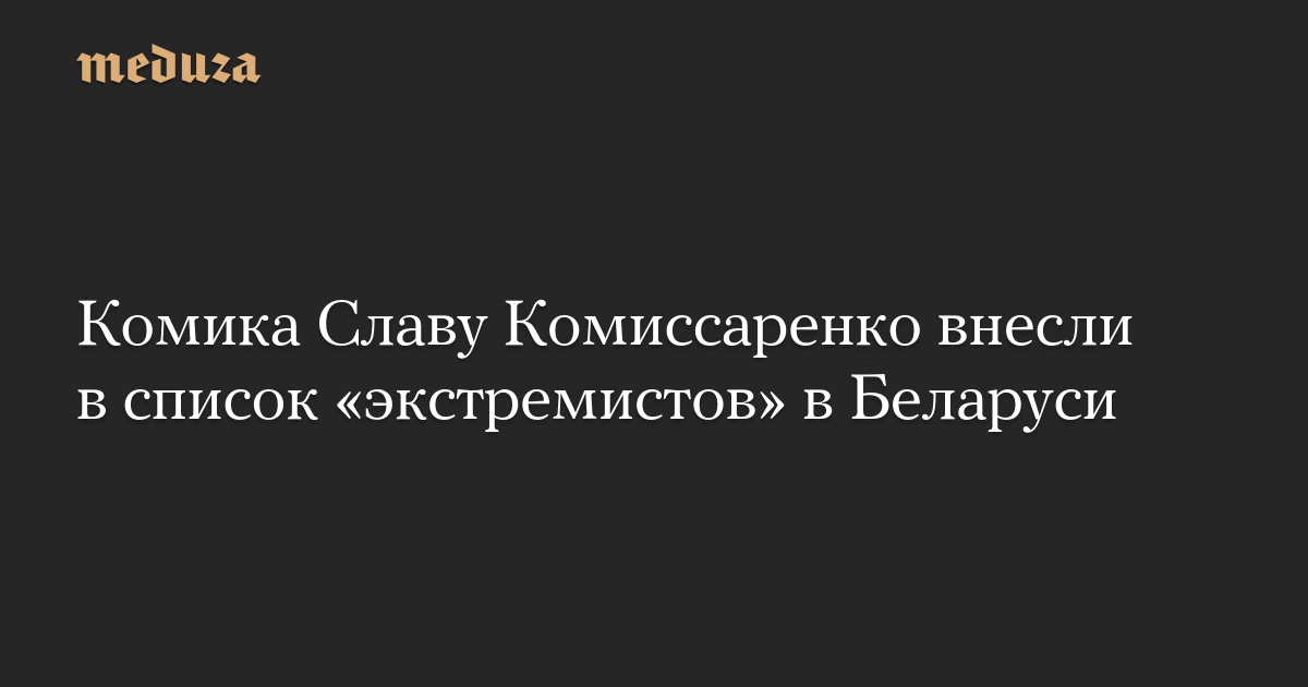 Стендап-комика Славу Комиссаренко внесли в список «экстремистов» белорусского МВД, соответствующая информация появилась на сайте ведомства. Внимание на это обратило издание «Медиазона. Беларусь».