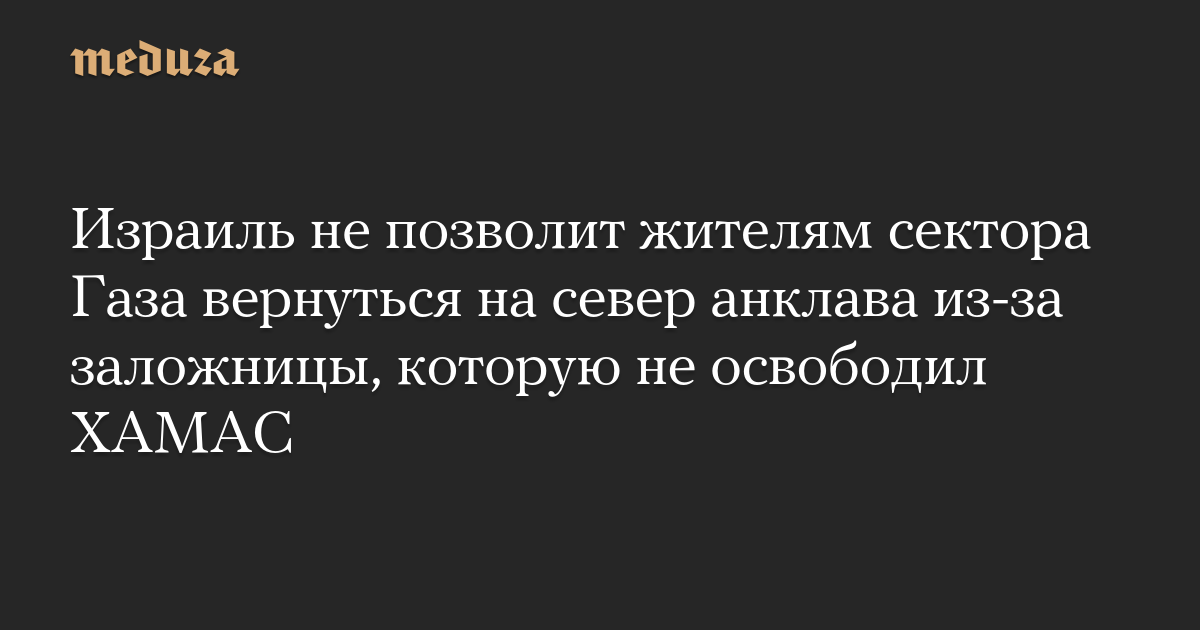 Израиль не позволит жителям сектора Газа вернуться на север анклава из-за заложницы, которую не освободил ХАМАС