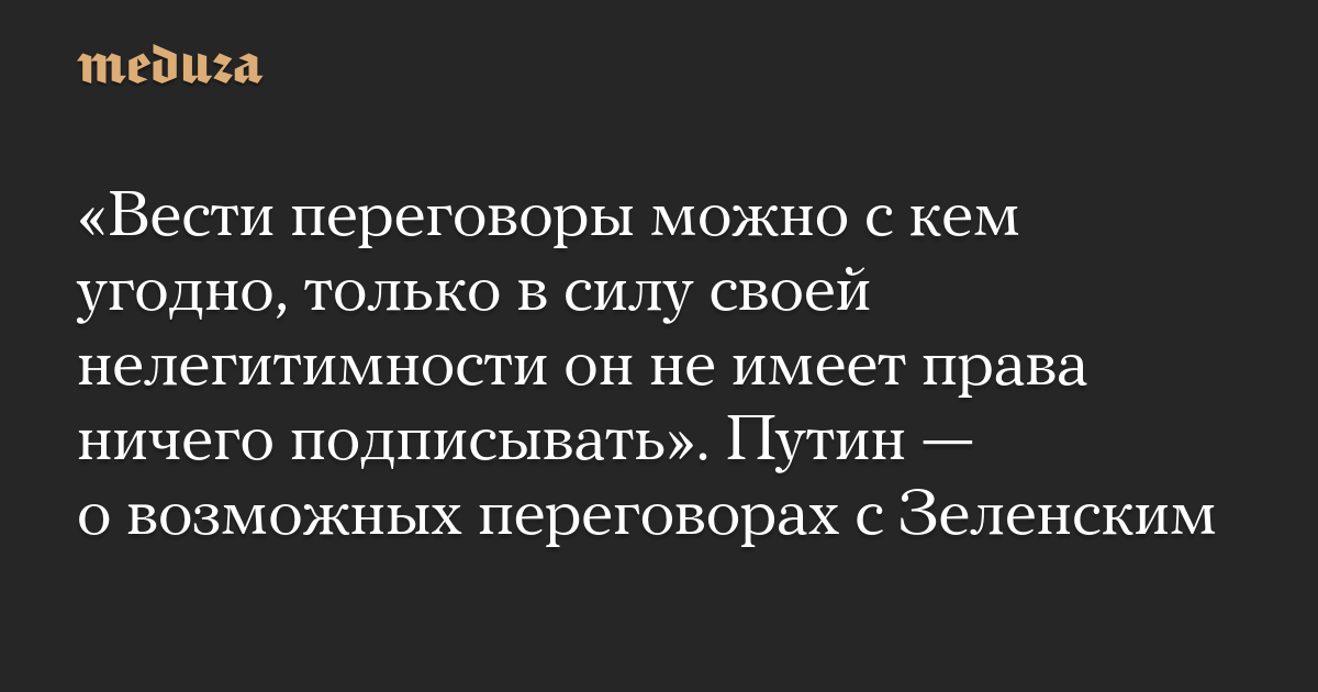 «Вести переговоры можно с кем угодно, только в силу своей нелегитимности он не имеет права ничего подписывать». Путин — о возможных переговорах с Зеленским