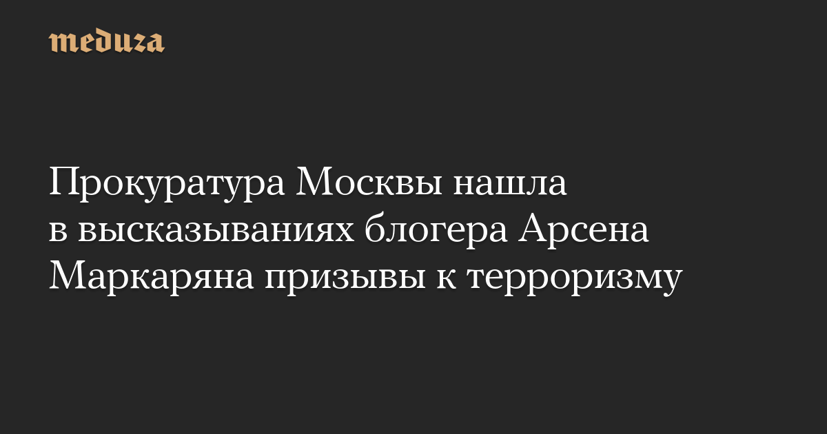 Прокуратура Москвы нашла в высказываниях блогера Арсена Маркаряна призывы к терроризму
