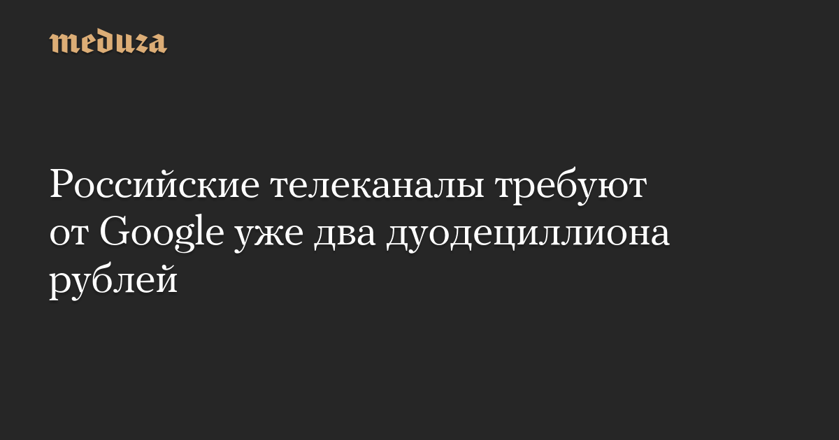 Российские телеканалы требуют от Google уже два дуодециллиона рублей