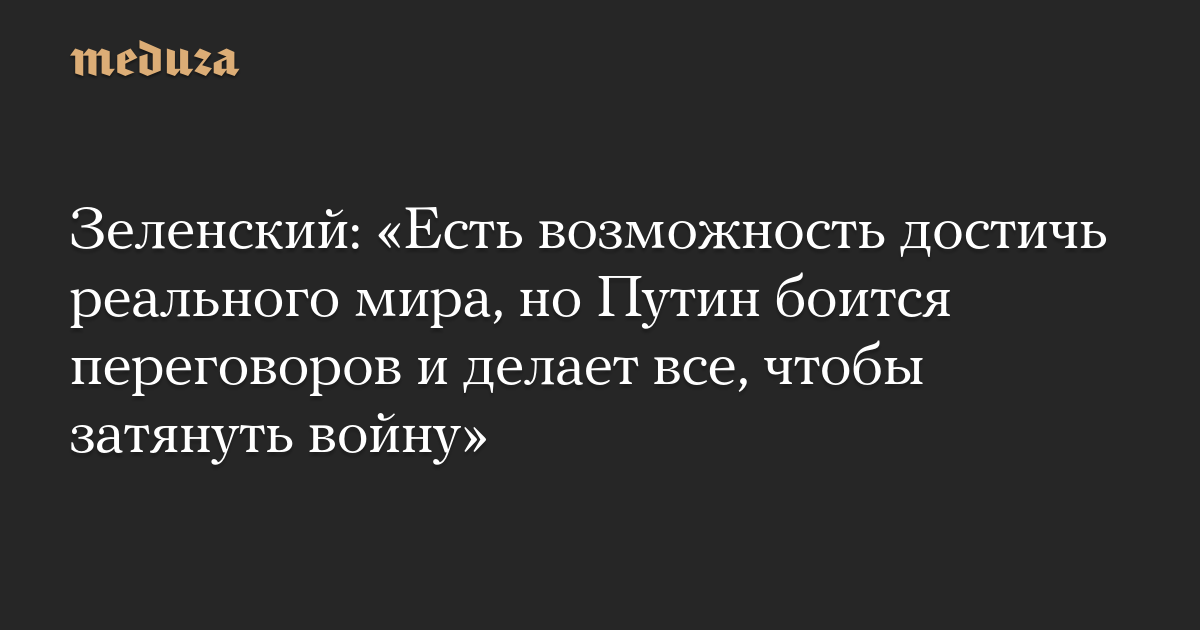 Зеленский: «Есть возможность достичь реального мира, но Путин боится переговоров и делает все, чтобы затянуть войну»