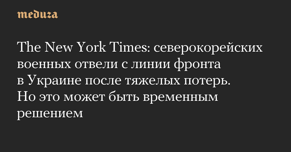 The New York Times: северокорейских военных отвели с линии фронта в Украине после тяжелых потерь. Но это может быть временным решением