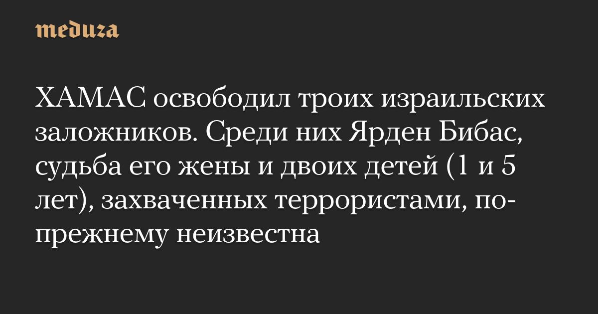 ХАМАС освободил троих израильских заложников. Среди них Ярден Бибас, судьба его жены и двоих детей (1 и 5 лет), захваченных террористами, по-прежнему неизвестна