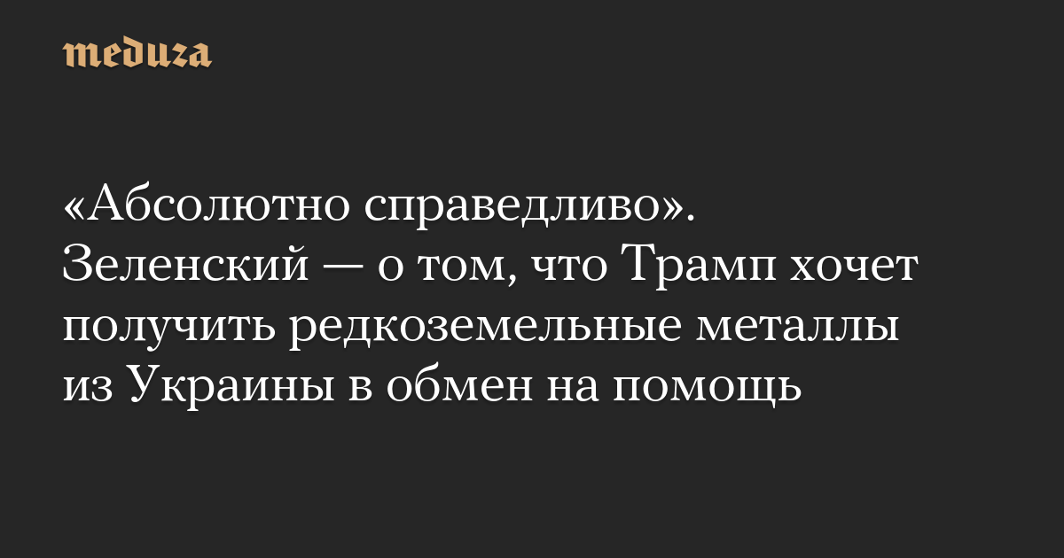«Абсолютно справедливо». Зеленский — о том, что Трамп хочет получить редкоземельные металлы из Украины в обмен на помощь